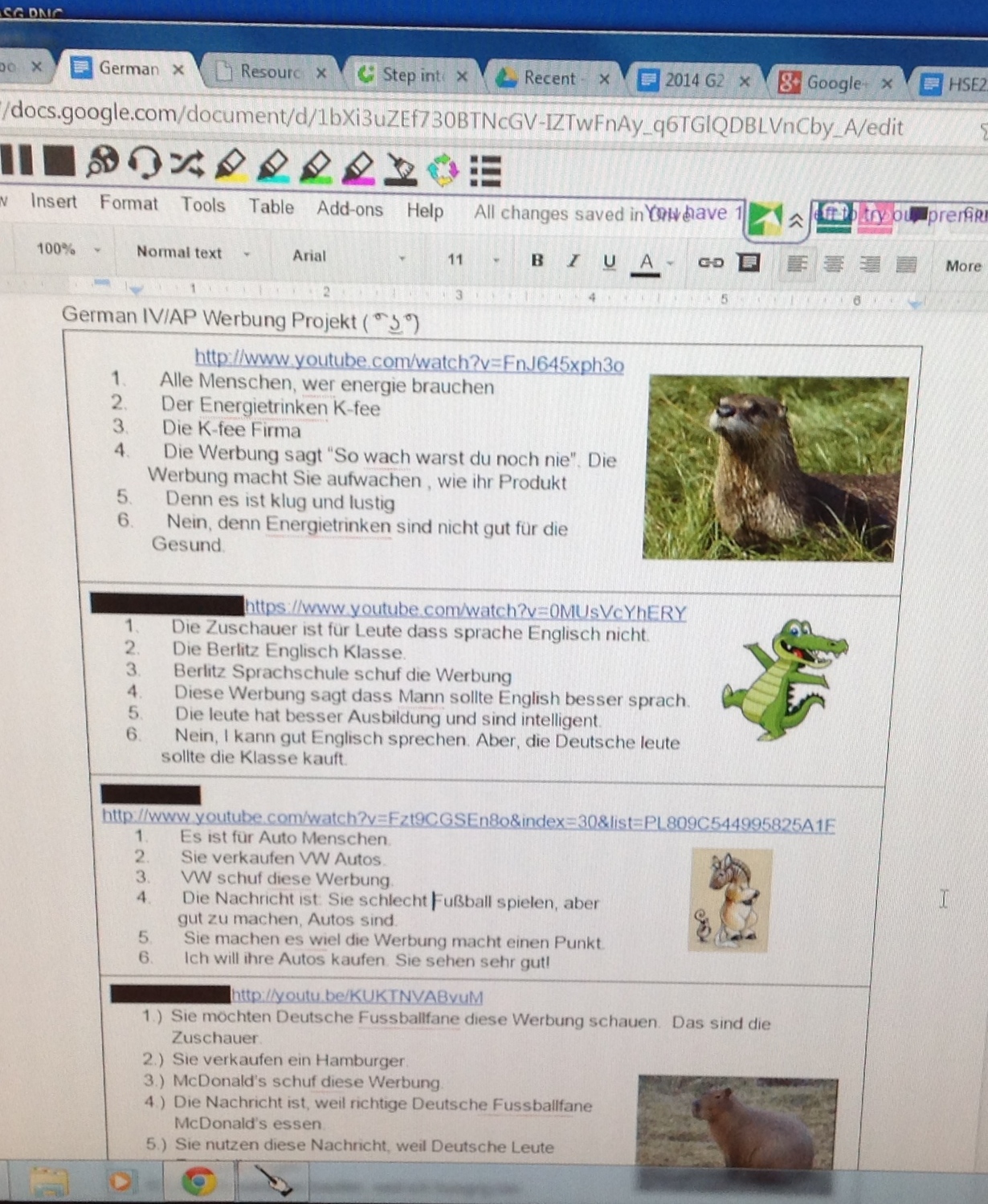 on a shared Google Doc. Tomorrow the students will present their finds, in German of course! As a follow up activity, they will comment on others’ chosen commercials, again, by accessing a shared Google Doc.