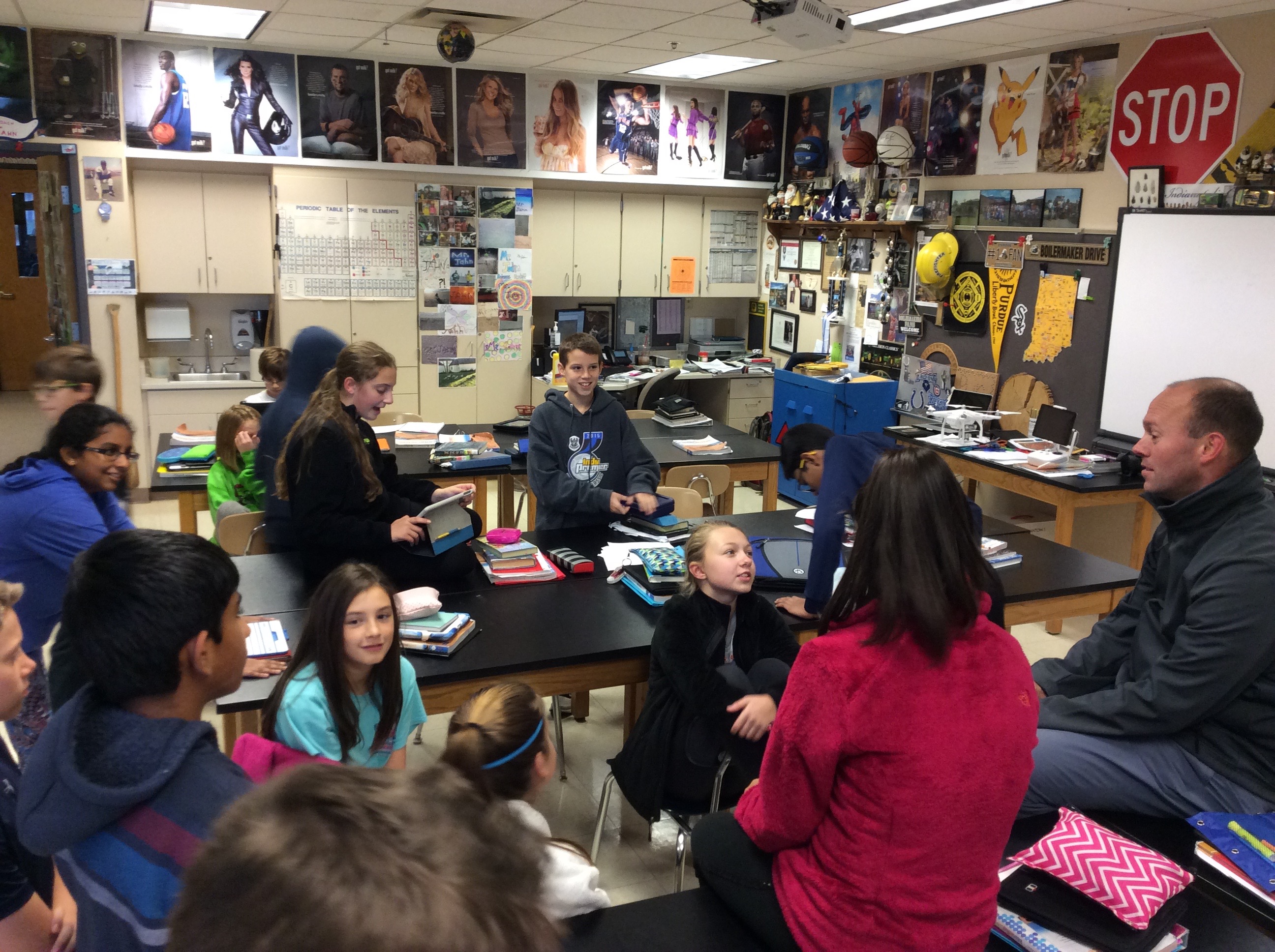 Walking into Adam Jahn’s class at Fall Creek Intermediate School felt like walking into the Apple Store on Saturday afternoon. The place was hopping with activity – very purposeful activity. Perhaps my quick appraisal of the setting was due to the fact that I already knew a special project was abrew. But, confirmation bias or not, these kids were clearly psyched about something, and were completely engaged in their tasks.
