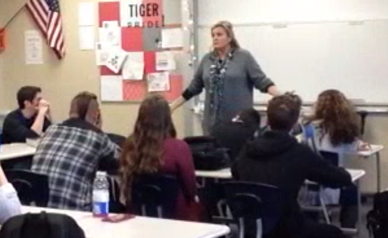 Media Specialist Sharon Deam makes the most of ‘real life’ teaching opportunities. During her digital citizenship unit this week at Fishers Junior High, Deam reminded her seventh graders that anything and everything they text or post online can affect their futures–and an