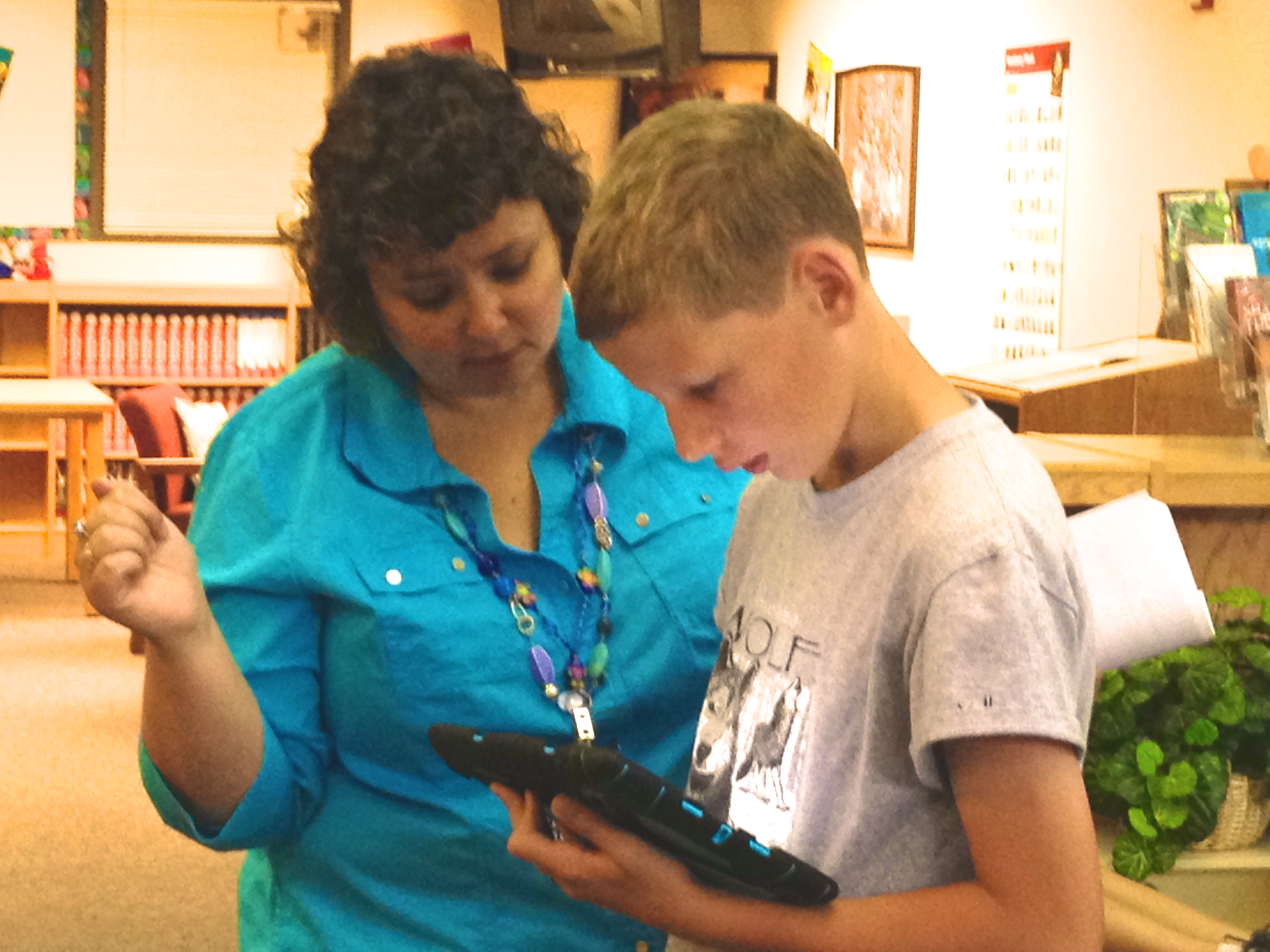 Media Specialist Terri Zabonick helps a student search the library catalog…on an iPad!